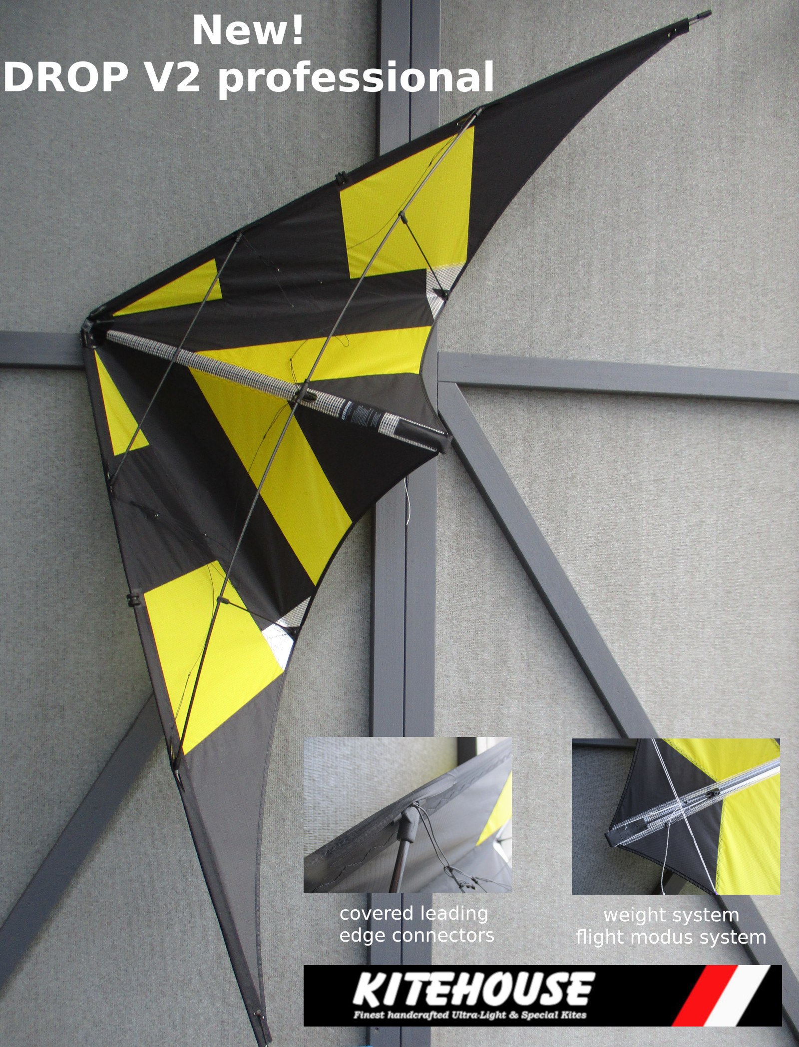 New: DROP V2 professional. +Covered leading edge, +kitehouse weight system, +flight modus system, +new sail design.+custom made possible +Icarex sail possible. Ready to fly. Available now. Ask for price by custom+Icarex.